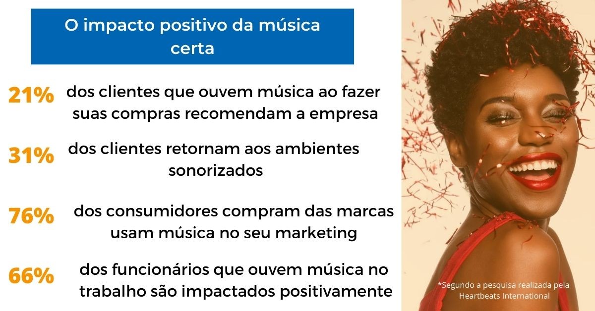 Segundo a pesquisa realizada pela Heartbeats International 14% dos consumidores compram mais quando tem música no ponto de venda (PDV).